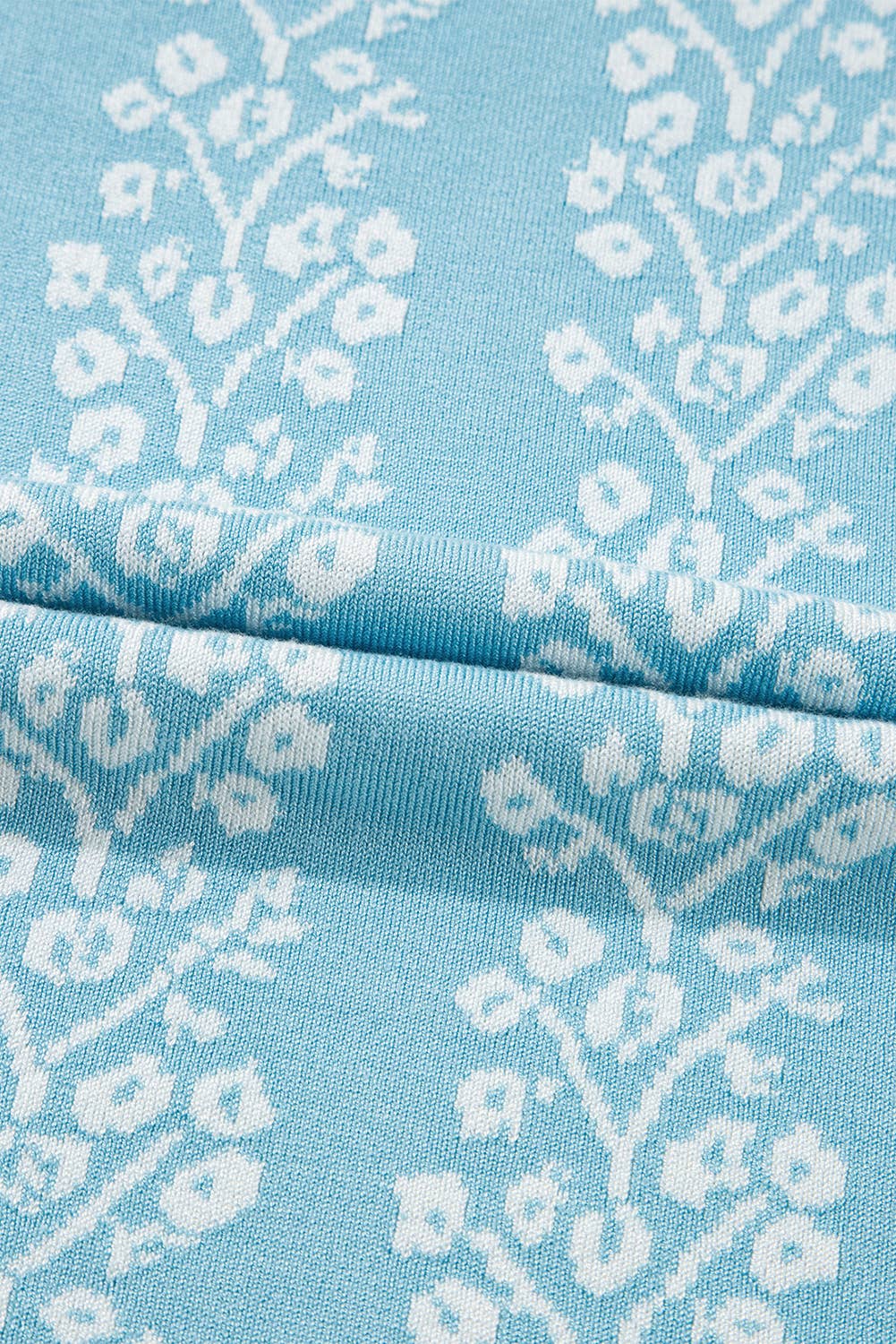 (M Tops) Contrast Floral Crewneck Short Sleeve Sweater (M-FCS9)