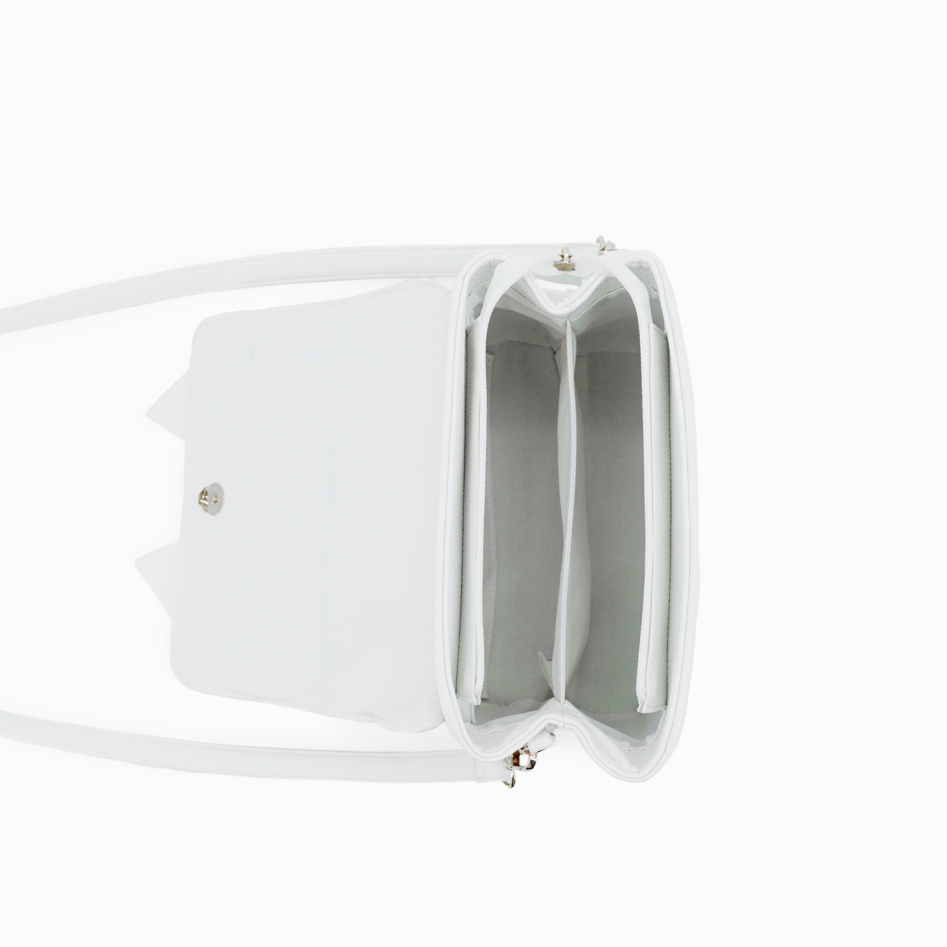 Magnetic snap front opening leading to a spacious interior. Inner divider to organize your essentials for this holiday season.