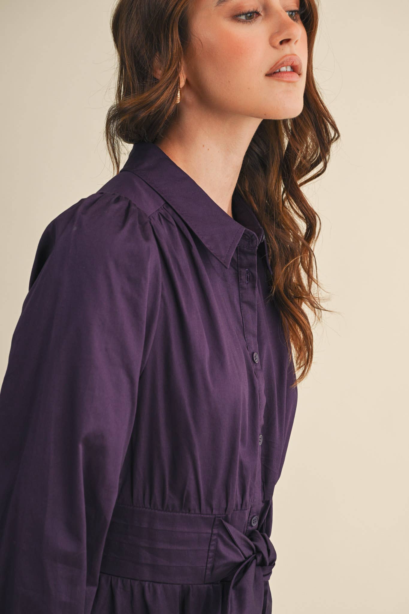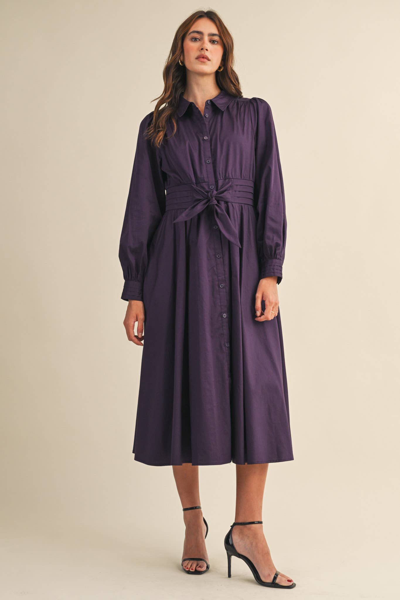 (M Dresses) PINTUCK WAIST TIE FRONT MIDI DRESS (M-PD21)