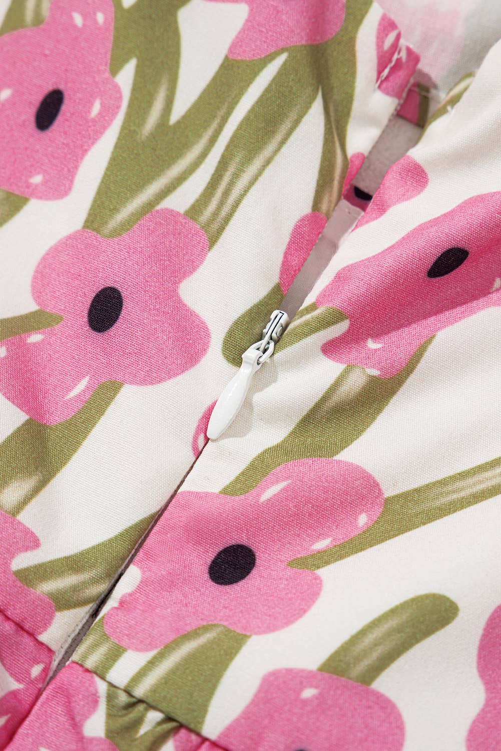 FINAL SALE - Ruffle Trim Square Neck High Waist Floral (P-RSND11)